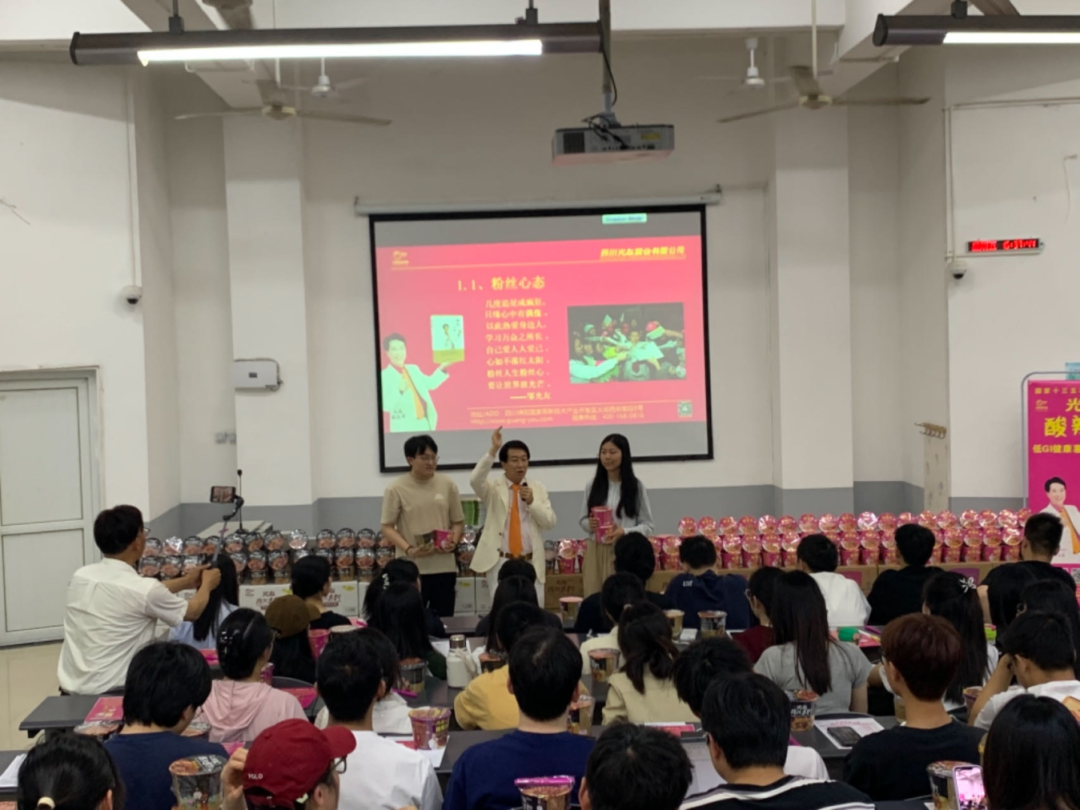 中國食品產(chǎn)教融合共同體副理事長、中國食品科學(xué)技術(shù)學(xué)會理事、方便粉絲方便米粉發(fā)明人、方便粉絲專家、光友薯業(yè)董事長鄒光友全國高校第170場巡回演講——《粉絲讓人生更精彩》在四川旅游學(xué)院食品學(xué)院揭開序幕。