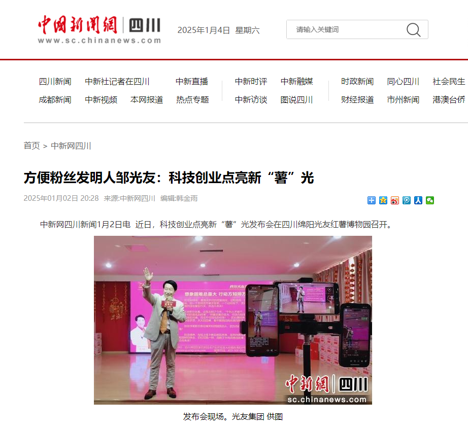 轉(zhuǎn)載中國新聞網(wǎng)·四川新聞——方便粉絲發(fā)明人鄒光友:科技創(chuàng)業(yè)點亮新“薯”光